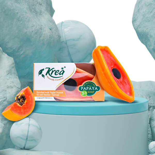 The krea papaya soap is specially made with the triple formula to make best papaya soap of 2022, skin whitening soap, krea papaya 3in1 soap